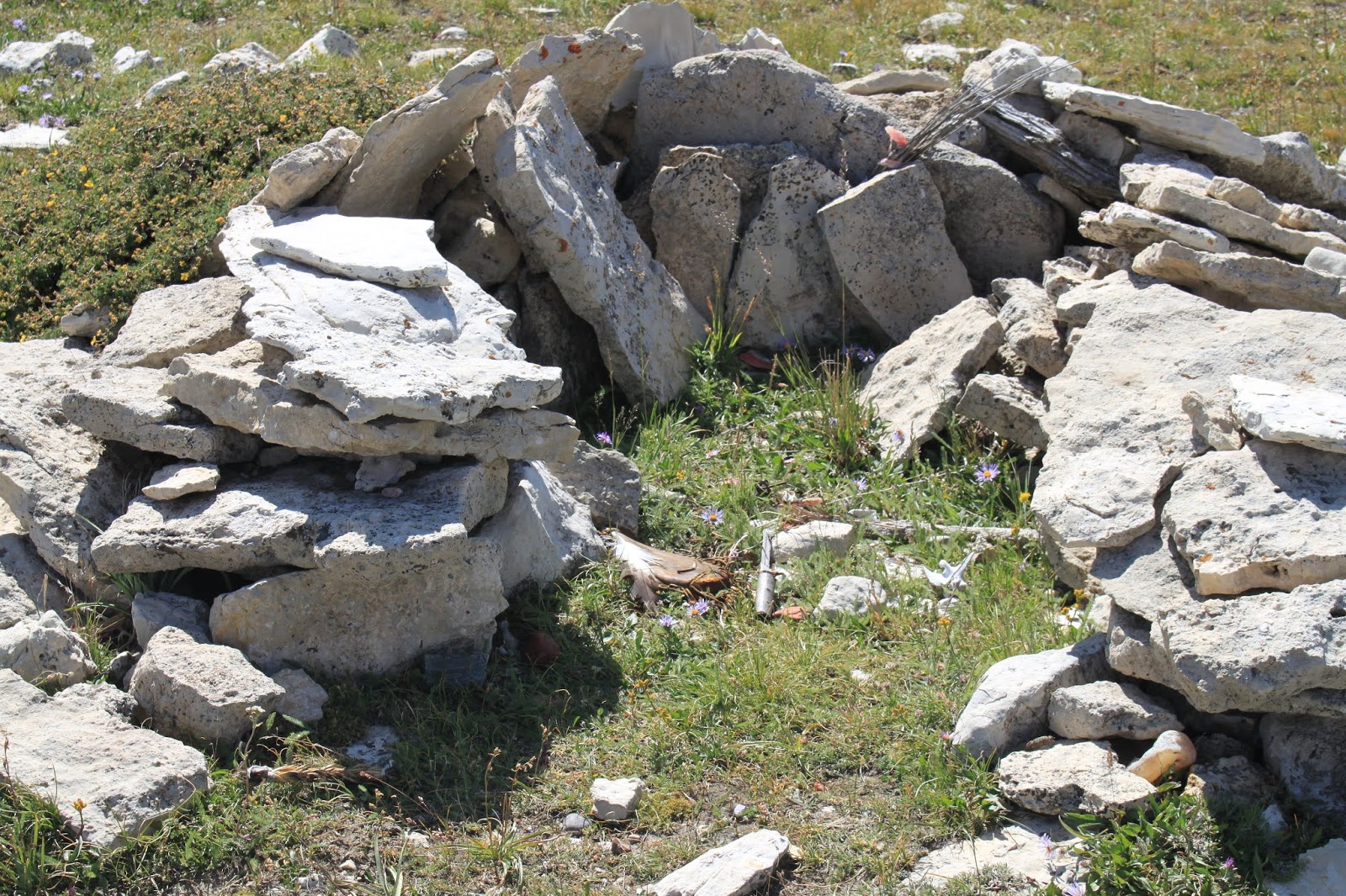 Prayer offerings out on the edge of this rock outcropping. The drop is about a thousand feet on the other side |
